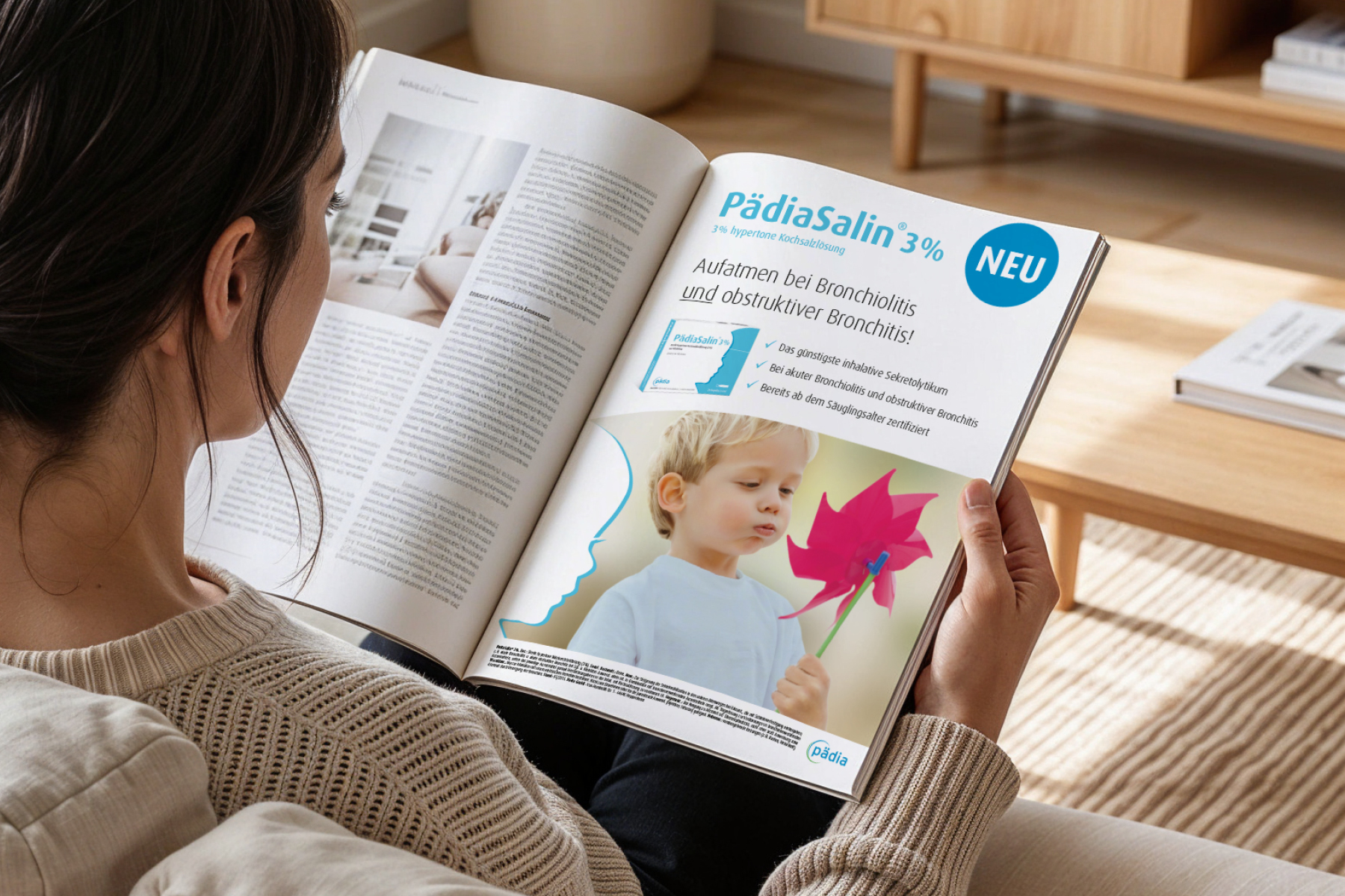 Unter der Leitidee „Gesundheit von Anfang an“ wurde ein unverwechselbares Markenbild entwickelt, das die Pädia GmbH klar als Spezialisten für pädiatrische Präparate im Relevant Set von Apotheken, Pädiatern und Hebammen positioniert und gleichzeitig Raum für zukünftige Portfolio-Erweiterungen lässt. Der Scherenschnitt dient dabei als zentrales Visual-Device und verleiht der Marke eine zeitlose, prägnante Kontur mit hohem Wiedererkennungswert. Ergänzt wird dieses Profil durch ein frisches, harmonisch abgestimmtes Color-Coding, das sowohl auf Unternehmensebene als auch für alle Produkte eine konsistente und flexibel erweiterbare Farbwelt schafft.